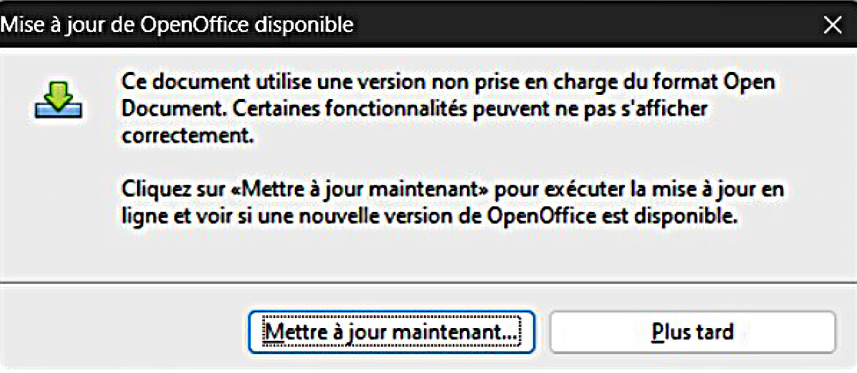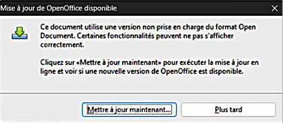 LibreOffice ce message apparaîtra à chaque fois que