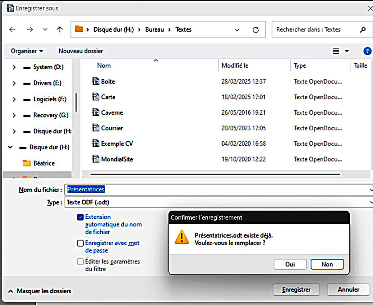 un message vous dira qu’il existe déjà, cliquez enregistrer et vous n’aurez plus jamais ce message.