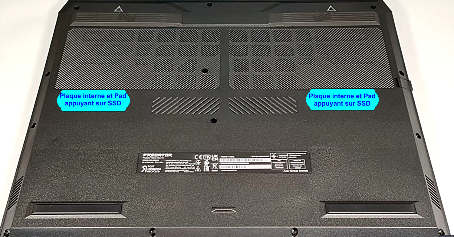 Le capot possède un système de 2 plaques intérieures qui appuient sur le ou les SSD cela nous parait hasardeux