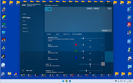 Fenêtre de la carte graphique intégrée Intel section couleur et personnalisation que vous devez faire