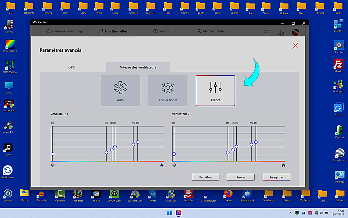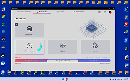 Le logiciel MSI Center sert à choisir l’un des 3 réglages des cartes graphiques et puissance
