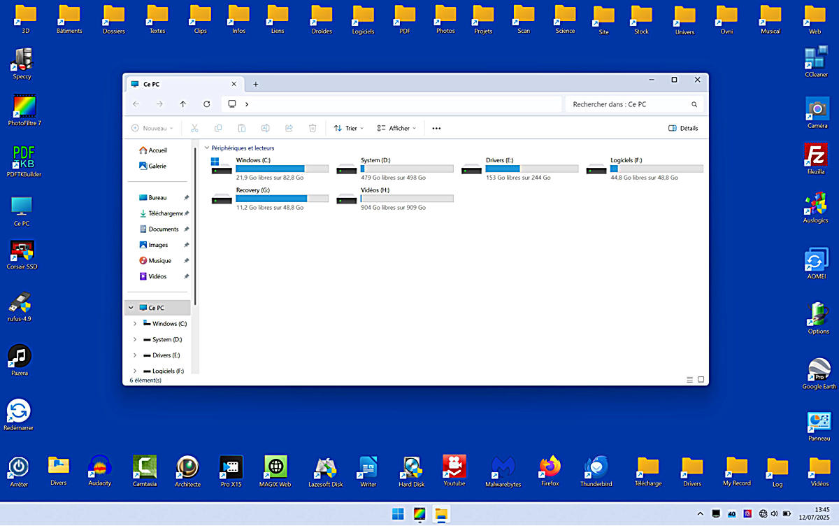 exemple toutes vos vidéos ou drivers avec photos dossiers textes etc. ce qui ferait une restauration
