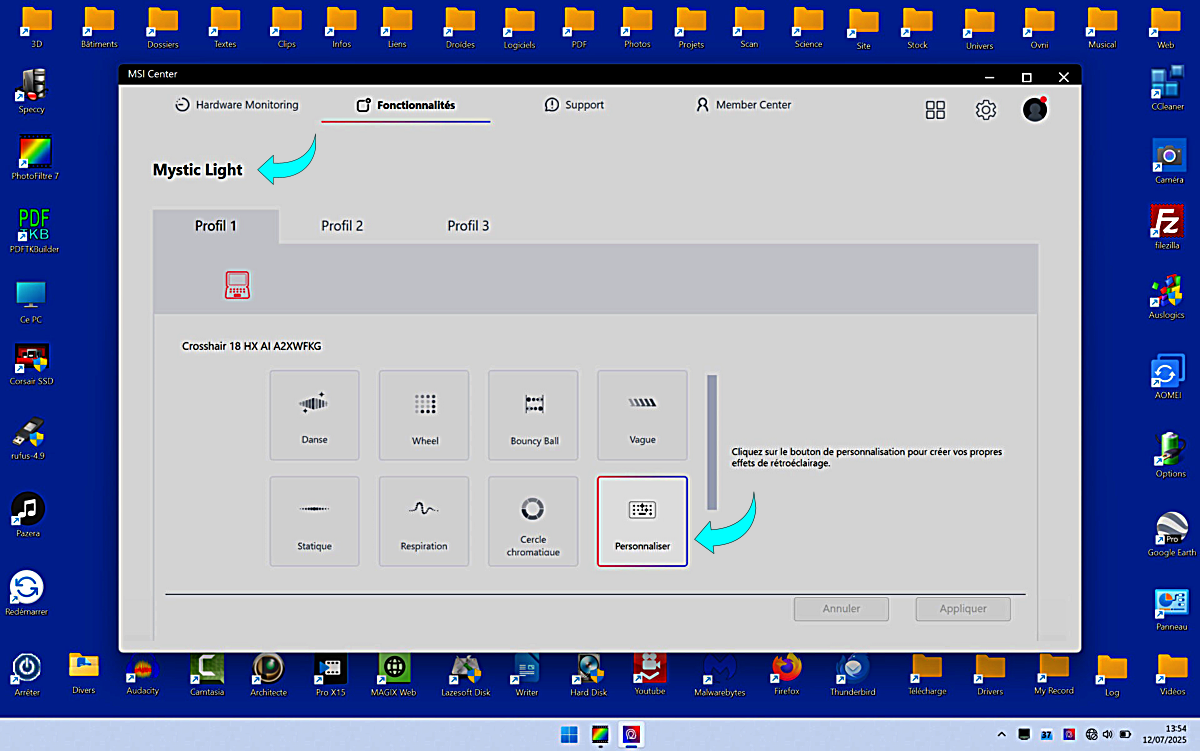 quelques photos illustrent les fonctions du logiciel MSI Center qui est important pour les réglages