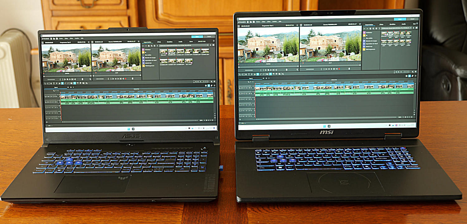 Asus TUF 707 inférieur en montage et codage vidéo au MSI qui lui est supérieur à tous les niveaux.
