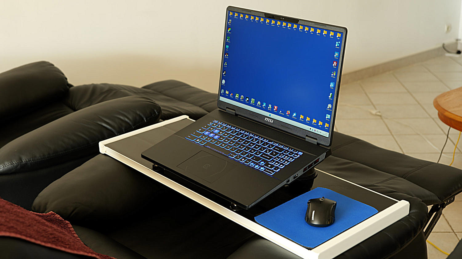 sur une planche ou sur le bureau, mais attention car si votre Pc portable est refroidi avec du métal
