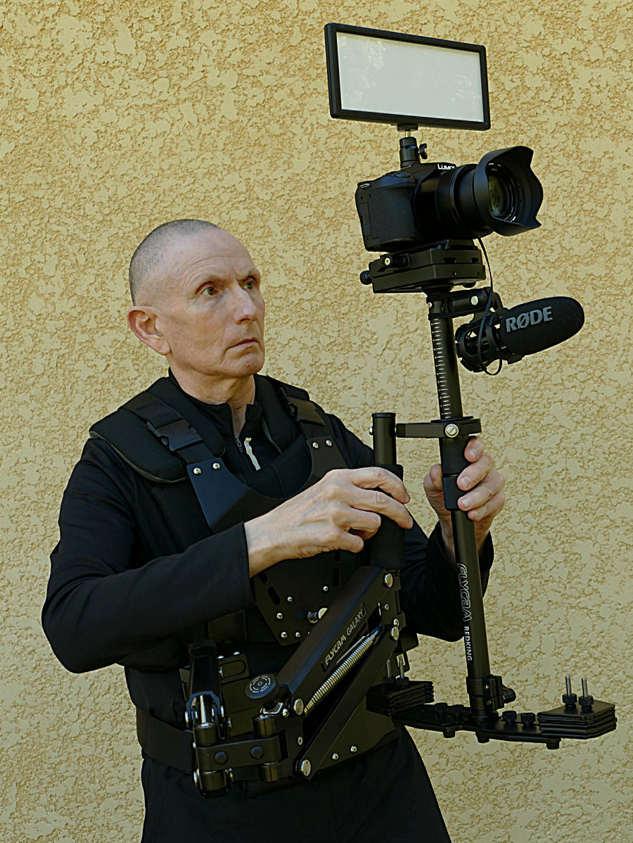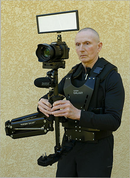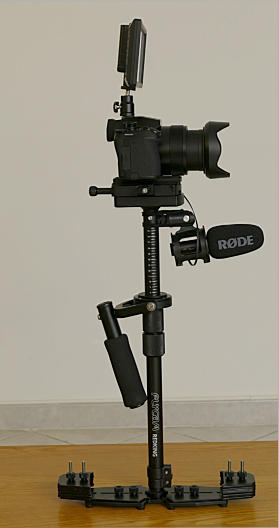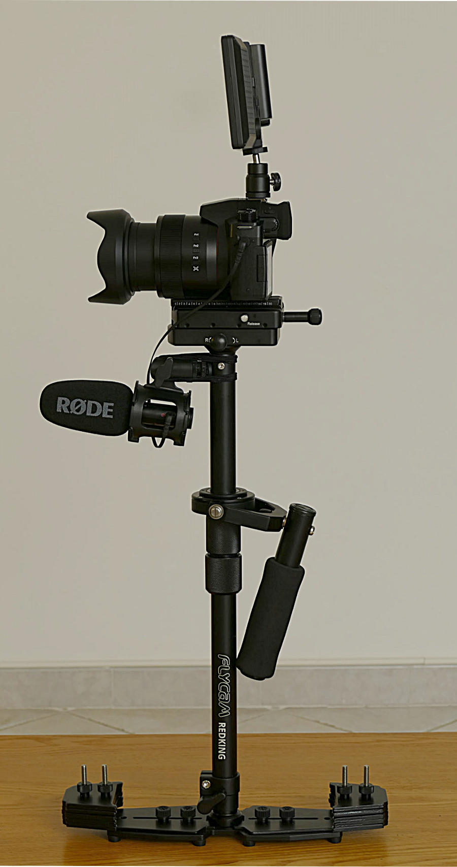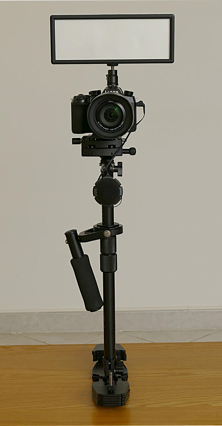 Stabilisateur Flycam Glaxy avec le FZ 1000 version 2 plus éclairage et micro rajouté sur le tube