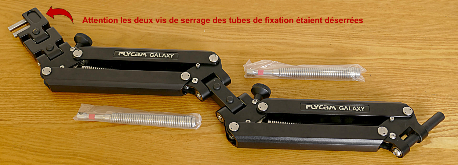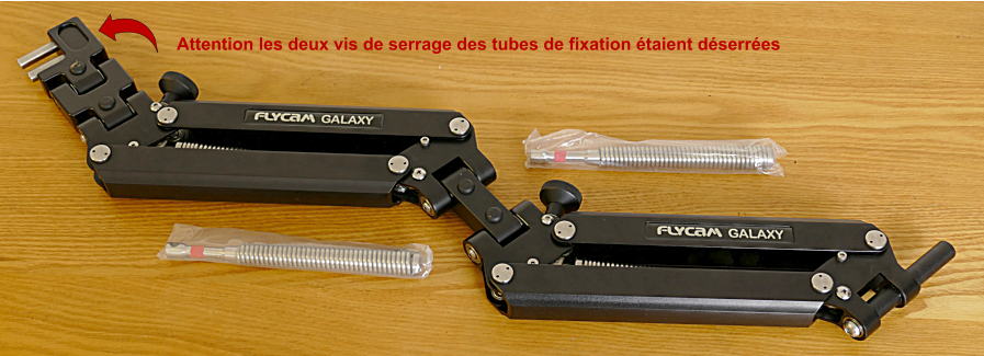 Attention le bras du Flycam est lourd, prenez en soins car il est la base d’amortissement avec le