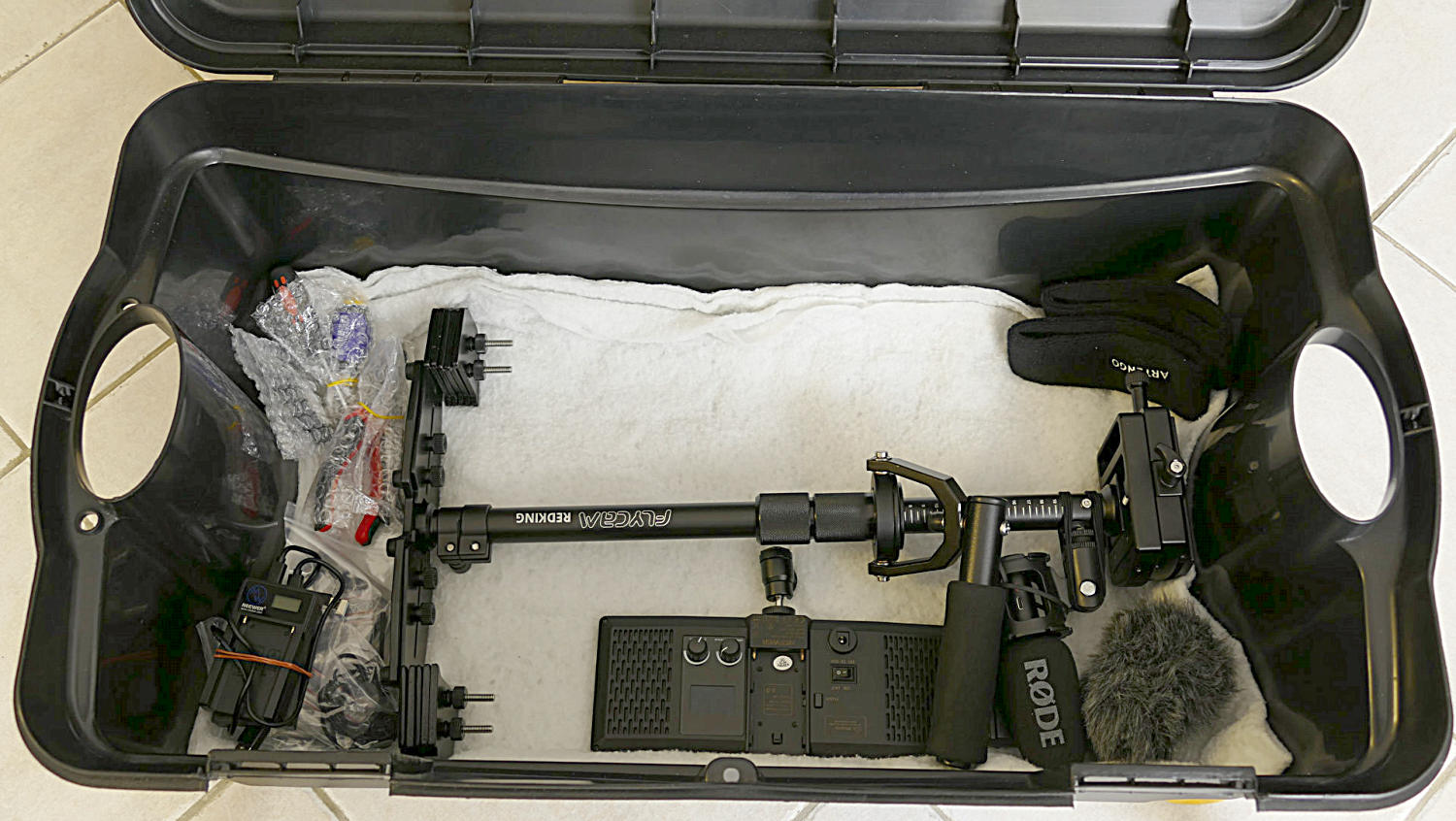 Il est très important d’avoir tous votre matériel dans une seule caisse sans oublier le bras du stabilisateur